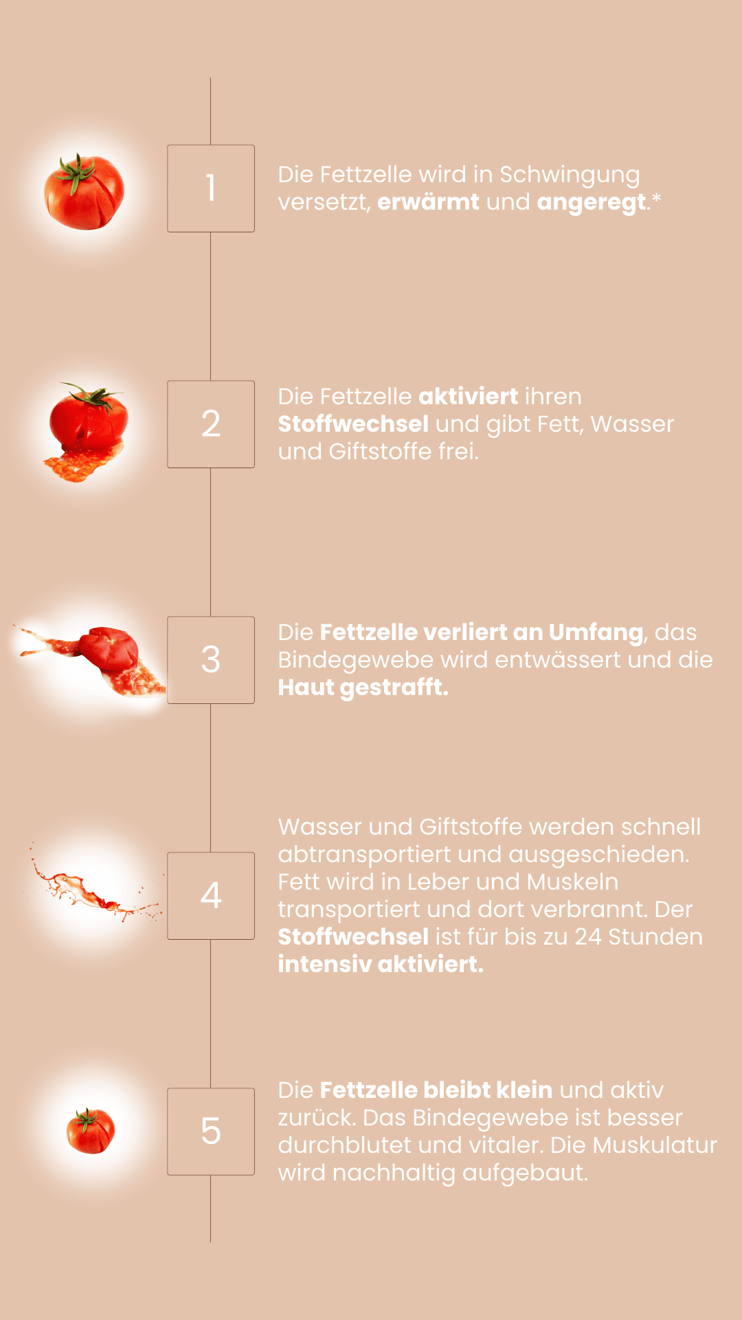 *Achtung! Die Fettzelle wird weder verletzt noch zerstört. Lediglich der Stoffwechsel der Fettzelle wird "aufgeweckt", damit der natürliche Fettabbau wieder ablaufen kann. Die Darstellung der Fettzelle dient ausschließlich der einfachen bildlichen Veranschaulichung. Eine Gewichtsreduktion auf der Waage setzt eine dafür geeignete Ernährung voraus.
